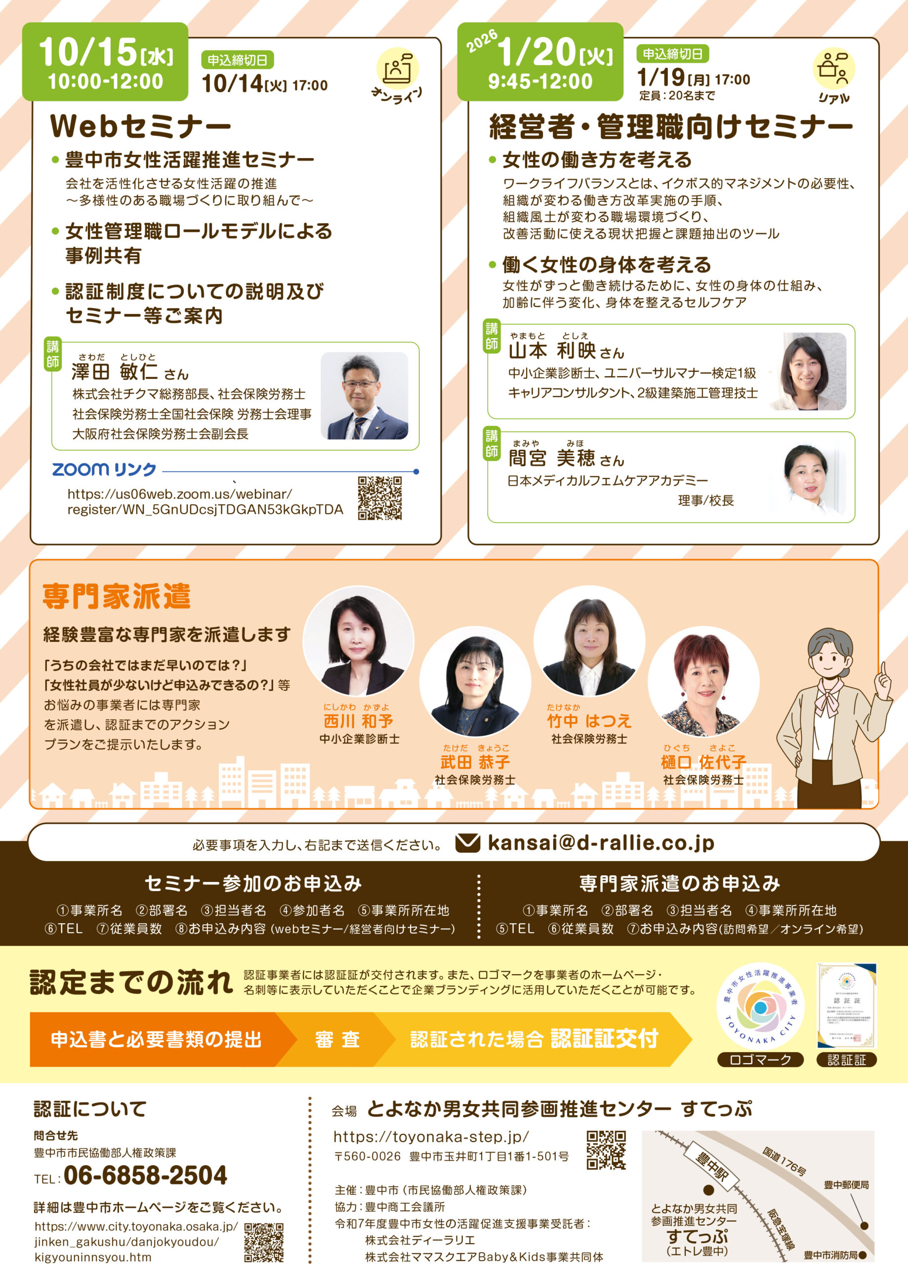 また、2026年1月20日(火) には、とよなか男女共同参画推進センター「すてっぷ」 にてリアルセミナーを開催予定です。