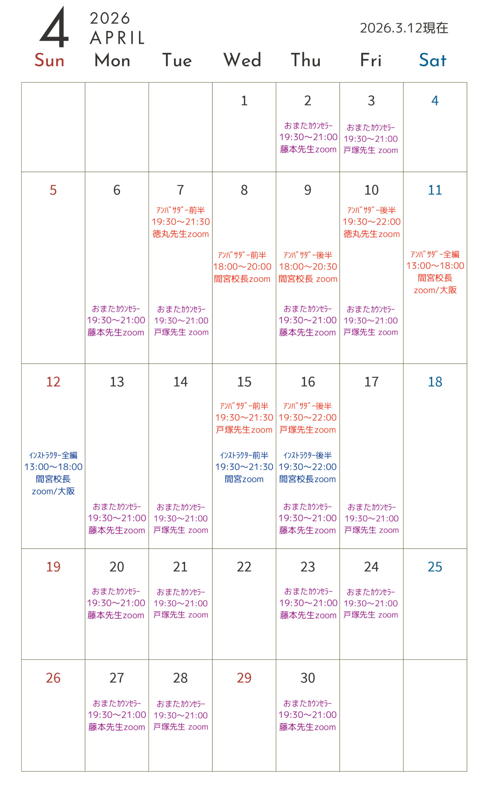 講座スケジュール 4月 - 日本メディカルフェムケアアカデミー